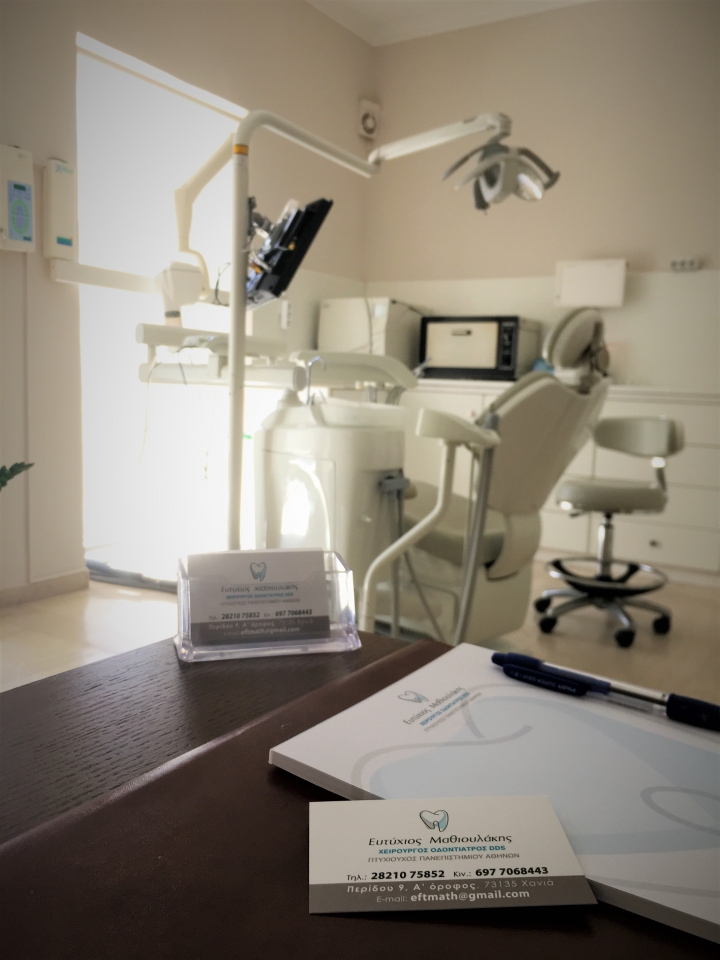 Ο χειρουργός οδοντίατρος Μαθιουλάκης Ευτύχης γεννήθηκε το 1995 στα Χανιά. Το 2013 εισήχθη στην Οδοντιατρική Σχολή των Αθηνών , όπου και αποφοίτησε το 2019 . Στη διάρκεια των σπουδών του, παρακολούθησε και εργάστηκε σε οδοντιατρείο στην Αθήνα με έμφαση στα εμφυτεύματα.Αποτελεί μέλος του Οδοντιατρικού Συλλόγου Χανίων απο το 2019.Το 2020 εκπλήρωσε τις στρατιωτικές του υποχρεώσεις, υπηρετώντας στην οδοντιατρική κλινική του 251 Γενικού Νοσοκομείου Αεροπορίας στην Αθήνα.Έκτοτε εργάστηκε σε ιδιωτικό ιατρείο στα Χανιά για ένα έτος.Από τον Σεπτέμβριο του 2021 διατηρεί ιδιωτικό ιατρείο στο κέντρο των Χανίων, στον ανακαινισμένο χώρο όπου διατηρούσε ιατρείο και ο πατέρας του, Μαθιουλάκης Δημήτρης.Ασχολείται με όλο το φάσμα της γενικής οδοντιατρικής ενώ παρακολουθεί ημερίδες και συνέδρια για την συνεχή επιμόρφωσή του.Στόχος του ιατρείου ειναι η αντιμετώπιση και η πρόληψη οποιουδήποτε προβλήματος, μέσα σε ένα άνετο και φιλικό περιβάλλον για τον/την ασθενή , ώστε να διατηρηθεί και να αποκατασταθεί η υγεία και η λειτουργικότητα του στόματός του.